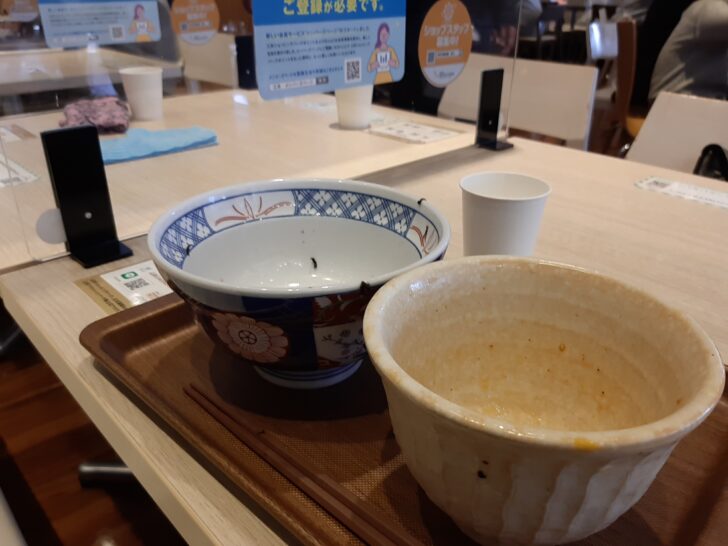 領収書と呼び出しベルを受け取って席で待つことに。待ち時間は約10分ほどでしたね。受取口に行ったら、つけだれが旨辛ではない物になっていました。それで、旨辛に変更して貰いましたが、開店直後でオペレーションに慣れていないようでしたね。これは、仕方ないですね。しばらくすれば改善されると思います。
