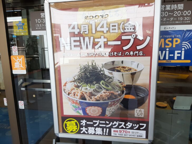 仙台市宮城野区の「MOP仙台港」2Fフードコートに、肉つけそば専門店『肉そば岳しろ』が、2023年4月14日にオープンしました。早速行ってみたので、紹介します。