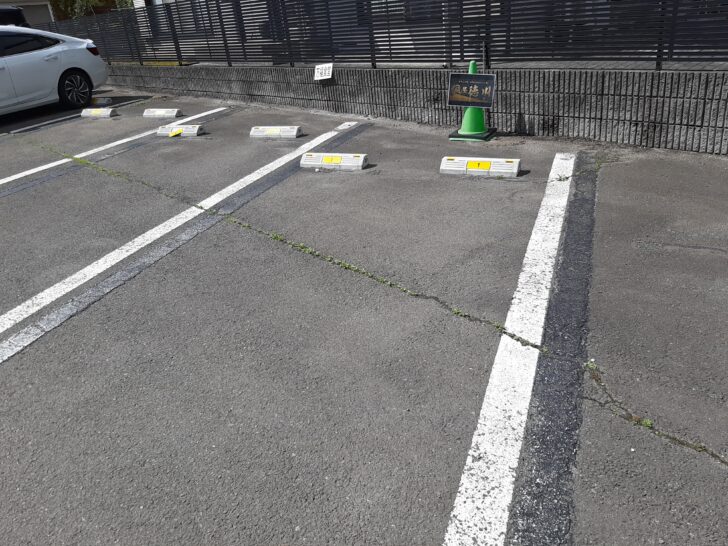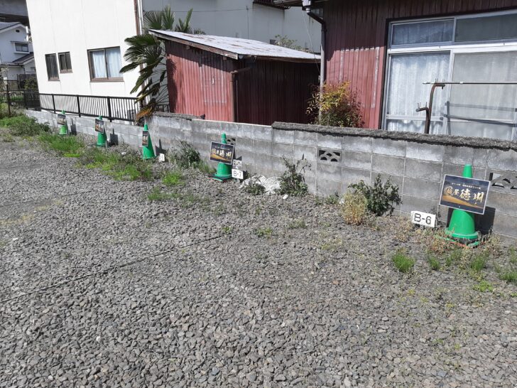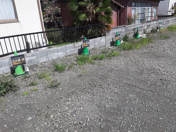 ここが5台分の駐車場です。『麺屋徳川』の表示があるので、間違わないと思います。