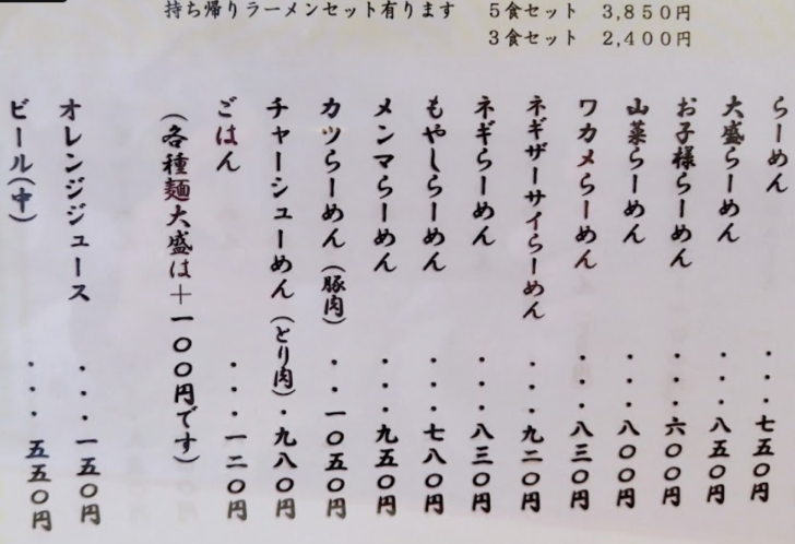 これは岩手県久慈市の『らーめんの千草本店 』のメニューですが、仙台分店も同じようなメニューが提供されるものと思われますね。