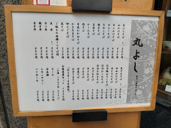 今回は、「そば屋のセット」【\1250】+瓶ビール【\550】+板わさ【\350】の【合計¥2,150】と超お得で大満足でした。また、私はどちらかというと、太麺の田舎蕎麦が好きなのですが更科そば『丸よし』の蕎麦は、凄く美味しくてボリュームもあり良かったです。それからメニューを見るとざるそば【\600】、中ざるそば(2人前)【\650】、大ざるそば(3人前)【\700】と、とんでもないボリュームと安さですね。このお店は、絶対また行きたいお店ですね。