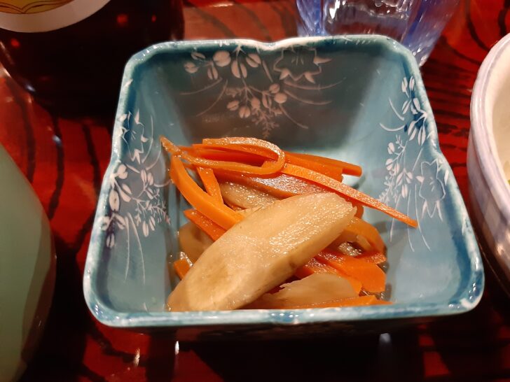 おつまみ2品目はゴボウと人参のきんぴらでした。ゴボウの食感が良くて、甘じょっぱい味付けが癖になりますね。