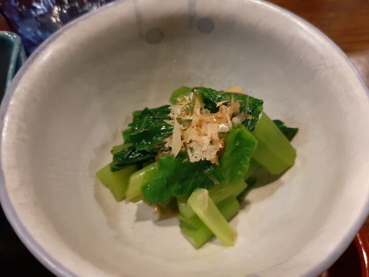 3品目は小松菜のお浸しでした。小松菜の甘さ美味しいです。