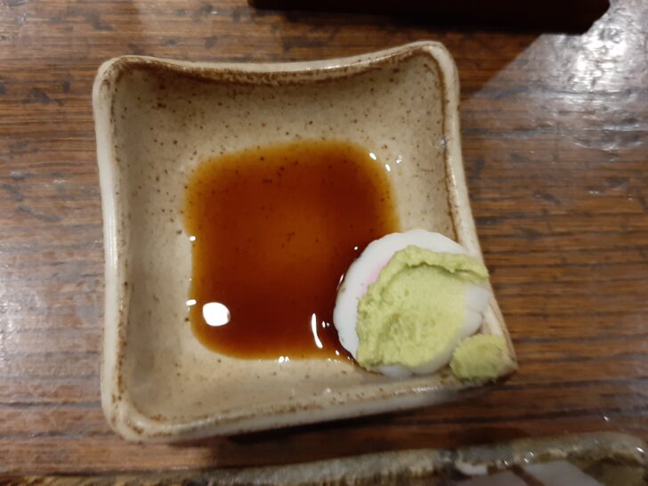 醤油皿にはナルトに載ったワサビが添えてありました。ナルトも美味しく戴けたので、嬉しかったです。
