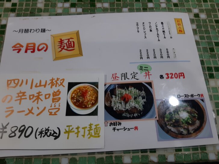 月替わりの限定麺があります。今月は「四川山椒の辛味噌ラーメン」のようです。