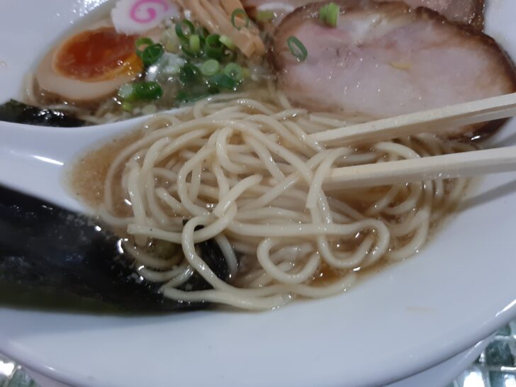 麺は全て自家製麺で、メニューにより、低加水のストレート細麺、平打ちちぢれ麺、平打ち麺、太麺などに分かれています。今回注文の「いぶし中華そば(こってり)」は、細ストレート麺で、ツルシコ食感で、美味しかったです。