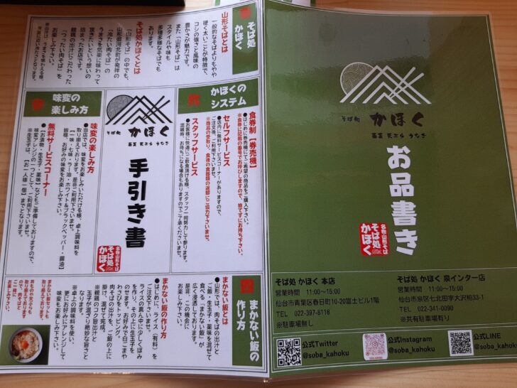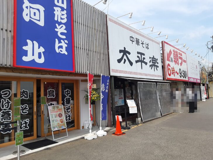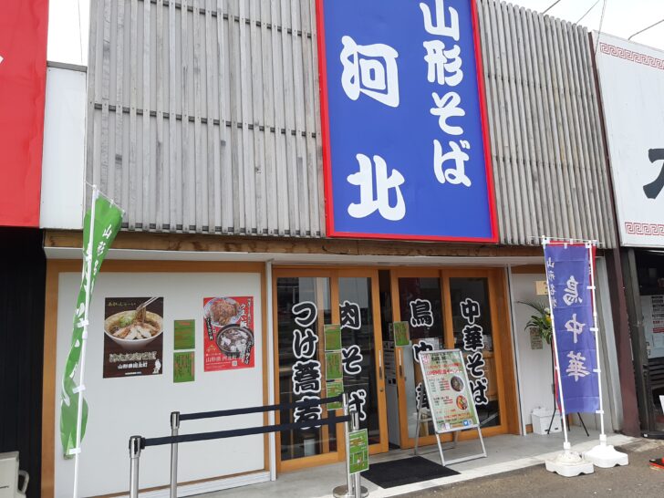 『そば処かほく 泉インター店』の出店場所はらーめん「中々」と中華そば 「太平楽 泉店」の間ですね。店名はひらがなの「かほく」のはずなのに、何故か看板は、漢字で「山形そば河北」となっていました。何故なんでしょうか?不思議ですね。