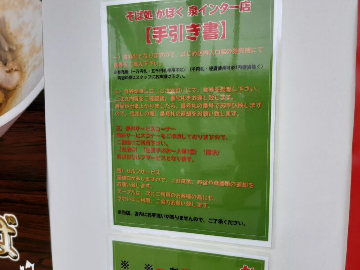 お店の前には手引書や注意事項が記載された貼紙がありましたので、良く読んで下さいね。