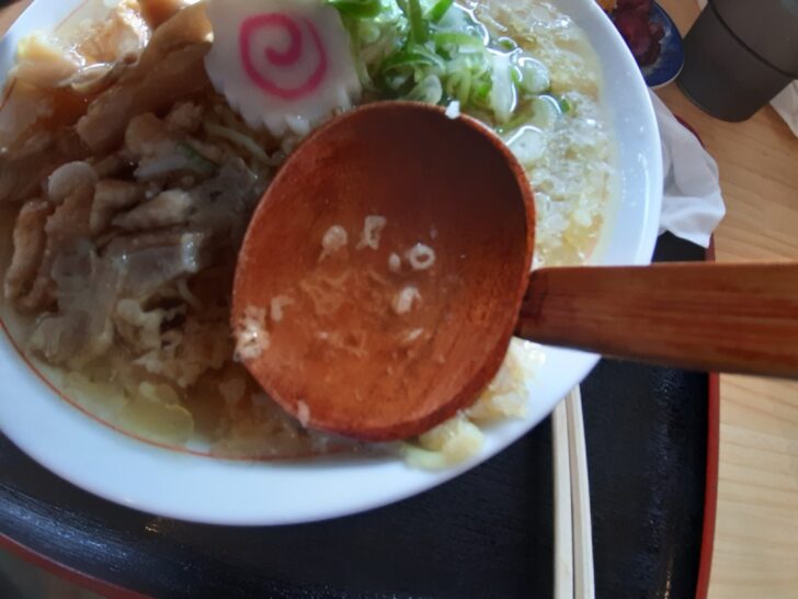 細くてちぢれた中華麺は、コシがあって、ツルシコで美味しいですね。(並盛)でも私には十分過ぎる量でした。