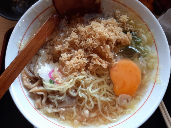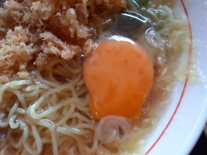 追加の揚げ玉と生玉子をトッピングして、更に美味しくいただきました。