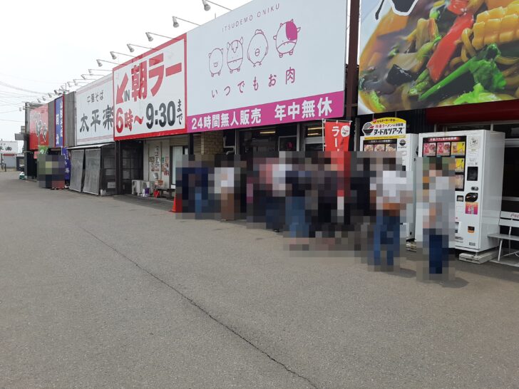 お店の前だけでは収まりきらないので、太平楽の店前を外していつでもお肉のお店の前まで行列ができていました。