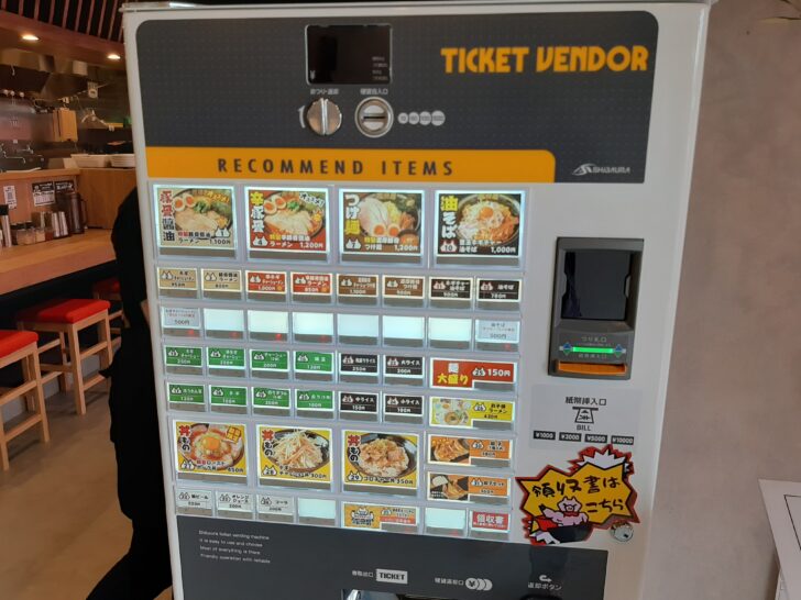 入口を入るとすぐ右側に食券の券売機があります。食券を購入すると、席を案内されます。