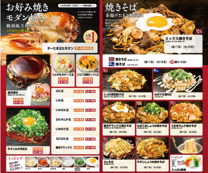 お好み焼き『鶴橋風月ヨドバシ仙台店』のメニュー