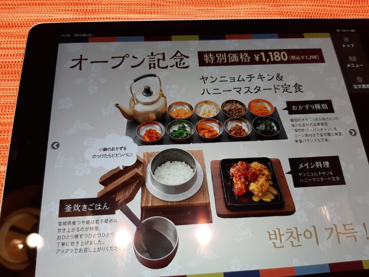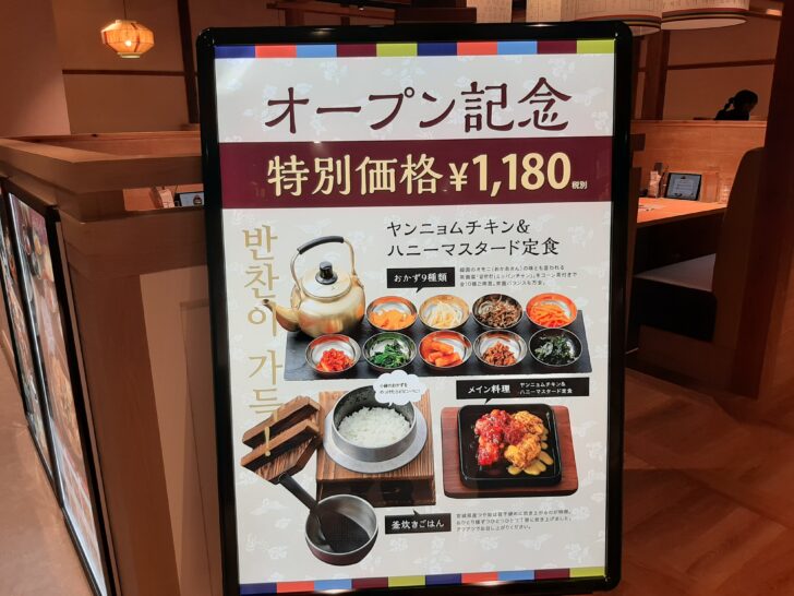オープン記念は「ヤンニョムチキン&ハニーマスタード定食」が100円引きの特別価格で提供されるようですね。