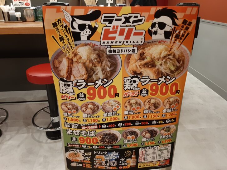 『ラーメンビリー ヨドバシ仙台店』は、株式会社情熱ノチカラが運営しているラーメン店で、宮城県内にビリー4店舗、ビリープラス1店舗、蕎麦ビリー1店舗の6店舗を出店しています。ヨドバシ仙台店が7店舗目となりますね。