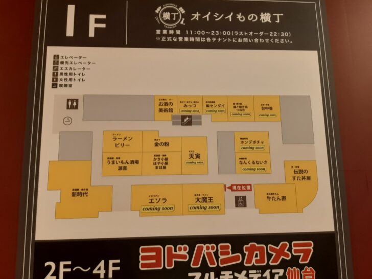 「ヨドバシカメラ仙台第一ビル」1Fの飲食店街『オイシイもの横丁』が、2023年7月14日がオープンしました。今回は8店舗のみのオープンですが、早速行ってみたので紹介します。