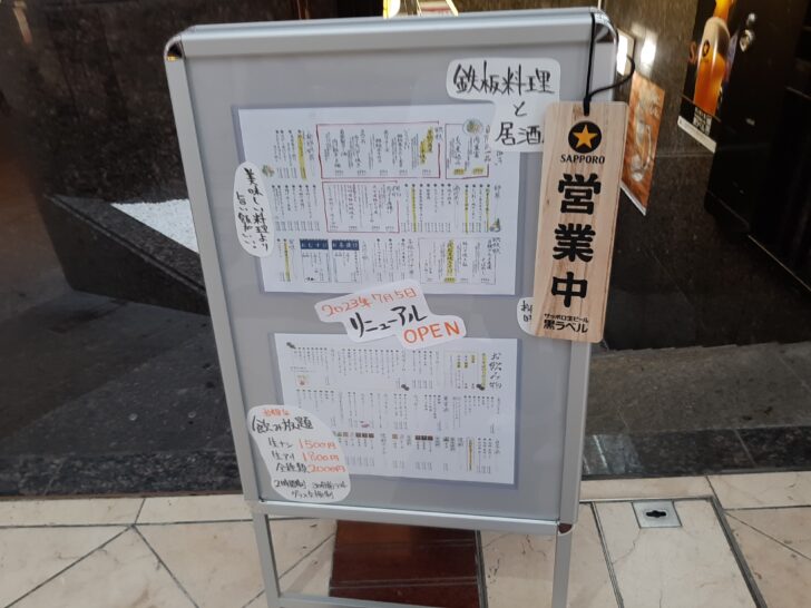 この日は、隣の蕎麦店『焔蔵(えんぞう)』にきていましたが、たまたま『永山仙台店』の看板を見てみたら、2023年7月5日にリニューアルオープンしたとの表示がありました。