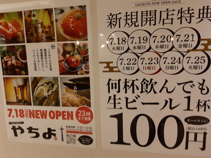 仙台駅のエスパル仙台本館B1Fに『お出汁 酒 アテ やちよ 仙台エスパル店』が2023年7月18日オープンしました。オープン記念で7/18~7/25の間は、エビス樽生ビールが【税込110円】で提供されます。早速行ってみたので紹介します。
