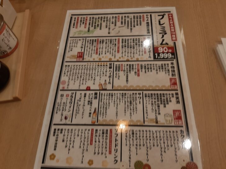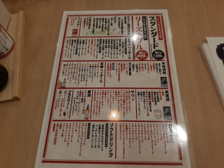 ドリンクの飲み放題メニューは3種類あります。『リーズナブル』は90分【税込1,099円】、『スタンダード』は90分【税込1,759円】、『プレミアム』は90分【税込2,199円】ですね。