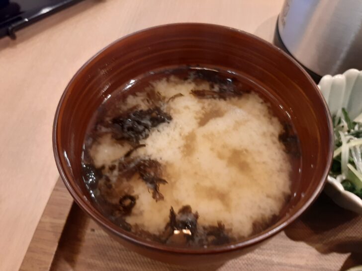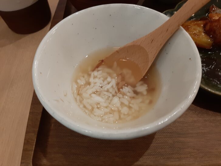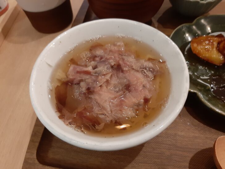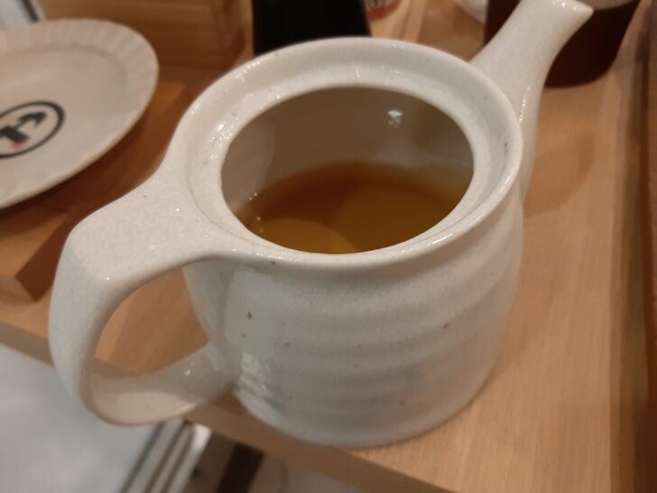 定食を注文すると、ポットに入った出汁が自動的に提供されます。