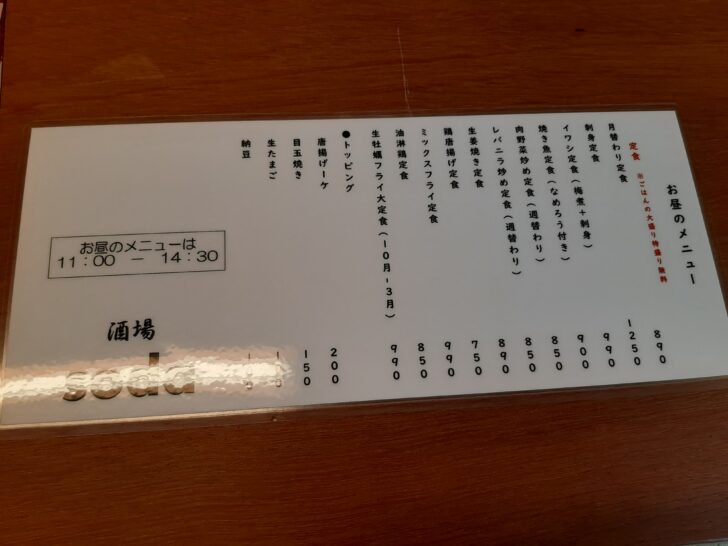 『酒場soda』のお昼のメニュー
