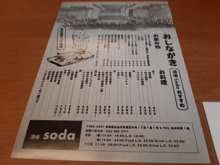 仙台駅東口の「エスパル仙台東館1F」『酒場 soda』が2023年7月30日11:00にオープンしました。早速行ってみたので紹介します。