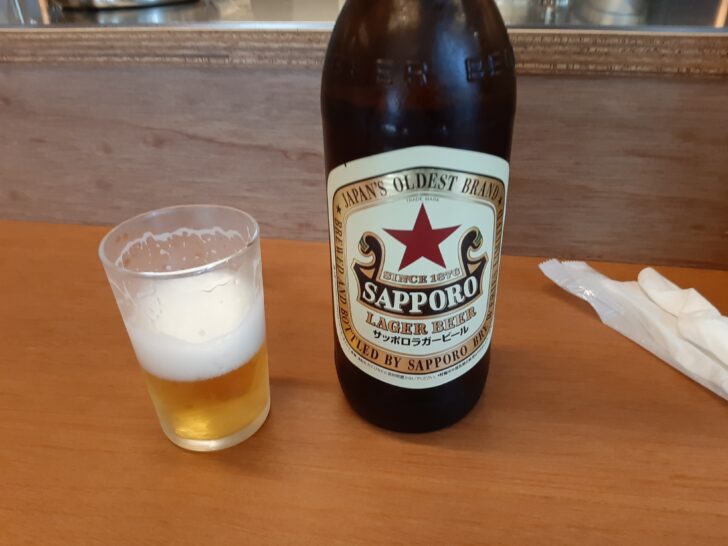 居酒屋なので、とりあえずビールを頼みました。頼んだのは、瓶ビールのサッポロ赤星大瓶【\690】でした。