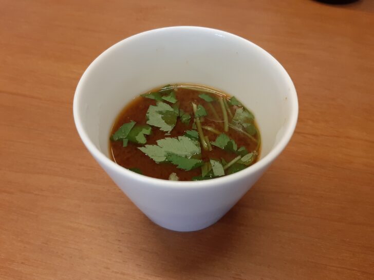 嬉しいことに、『酒場 soda』では会計(現金支払いの場合は、お席で会計できます)をお願いすると、無料で赤だし味噌汁が提供されます。これは美味しかったですね。赤だしと言えば、愛知県で製造される八丁味噌を使用した味噌汁ですね。私は7年程名古屋に住んでいたので慣れた味で、美味しいと思います。最後に味噌汁を提供してくれるお店といえば、仙台では2022年12月に焼失してしまいましたが『もつ焼き専門 丸昌』がありました。