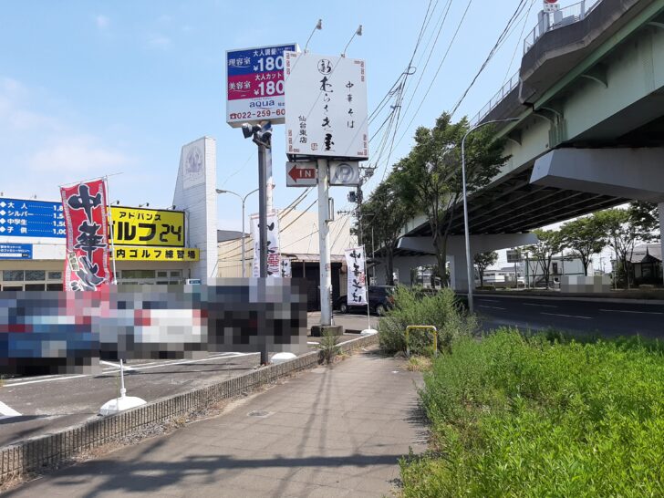 中華そば『新むらさき屋 仙台東店』への入口は2カ所あります。産業道路よりの入口から左折して入る場合の入口はこちらです。