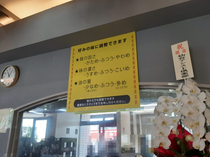 『むらさき屋』では、利府本店でもそうですが、家系ラーメン店のように、麺の固さ、味の濃さ、油の量が選べます。これは嬉しいですね。