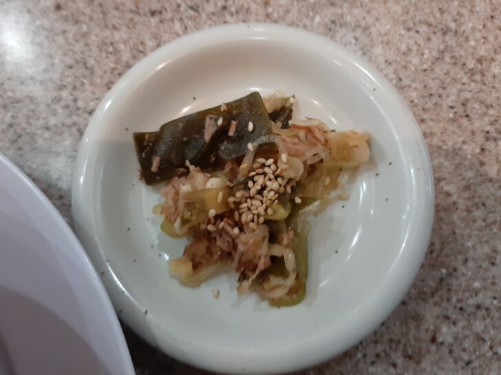 本日の小鉢は、ネギチャーシューに昆布と胡麻を加えて和えた物でした。