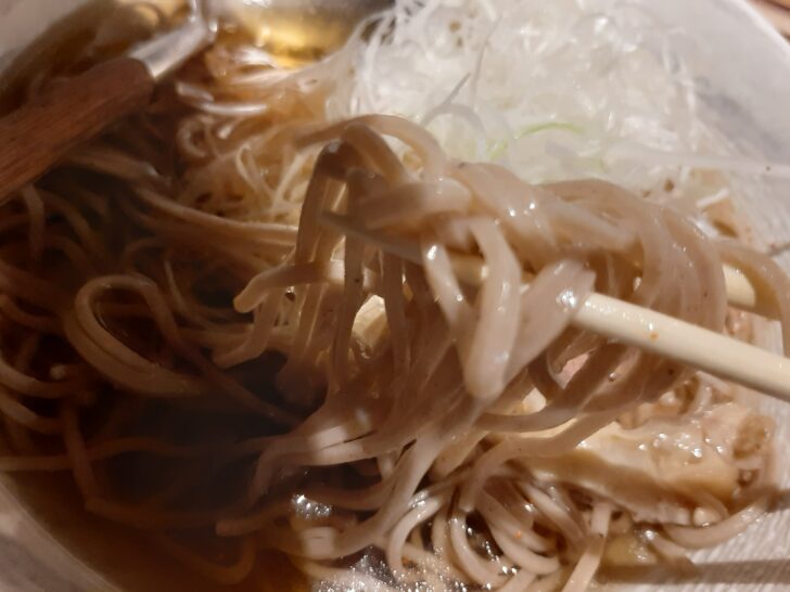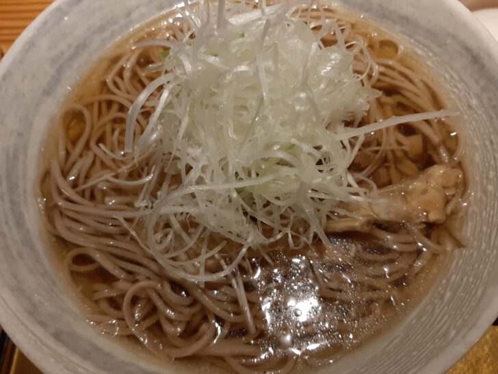 山形蕎麦と炙り『焔蔵 (えんぞう)仙台一番町店』の「冷たい肉そば」は間違いない美味しさですね。白髪ねぎが載っているのも良いですよね。