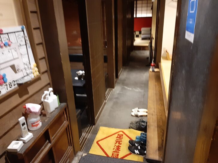 入口を入って右側が個室、お座敷個室、掘りごたつ席などがあります。