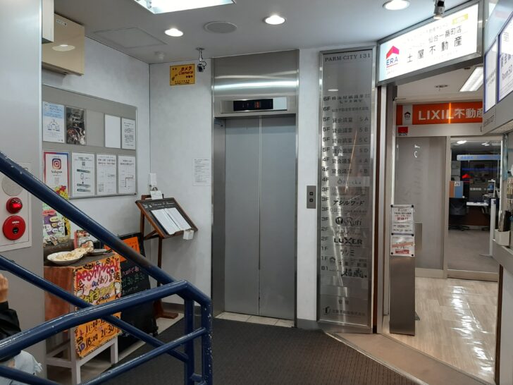 ビル1Fの奥にはエレベータがあります。これでも地下に行けますね。