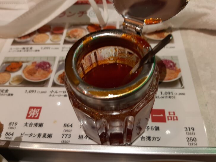 今回注文したメニューは『小ジーロー坦々麺(汁あり)』【税込\1,200】と『台湾カツ』を注文しました。メニュー表では『台湾カツ』は【税込\275】となっていましたが、スマホで注文したところ、何故か【税込\150】でした。これはお得ですね。