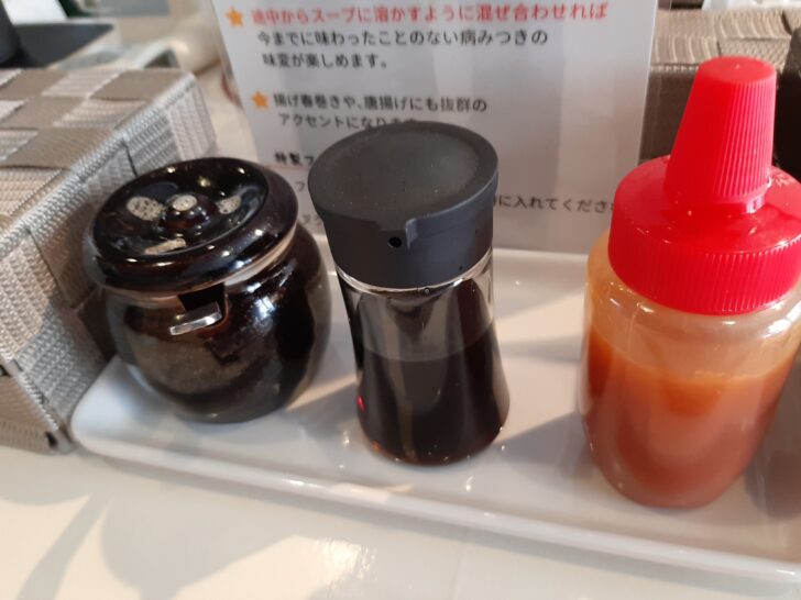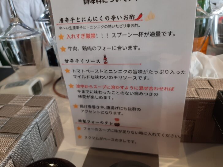 途中で「唐辛子とにんにくの辛いお酢」を入れて味変をしてみましたが、ニンニクが効いたお酢が「フォー」にマッチして美味しかったです。