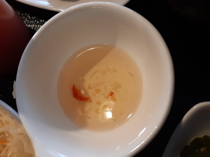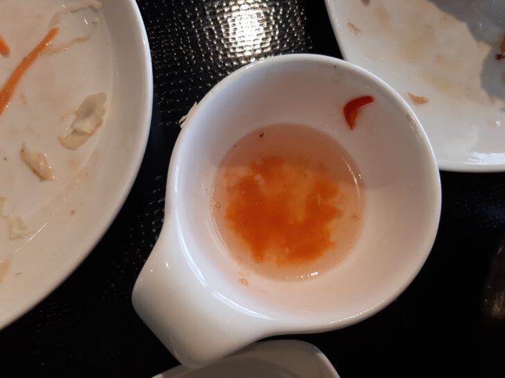 揚げ春巻き用のタレには、甘辛チリソースを入れると美味しいと店主さんに勧められたので入れてみましたが、入れた方が美味しくなりますね。
