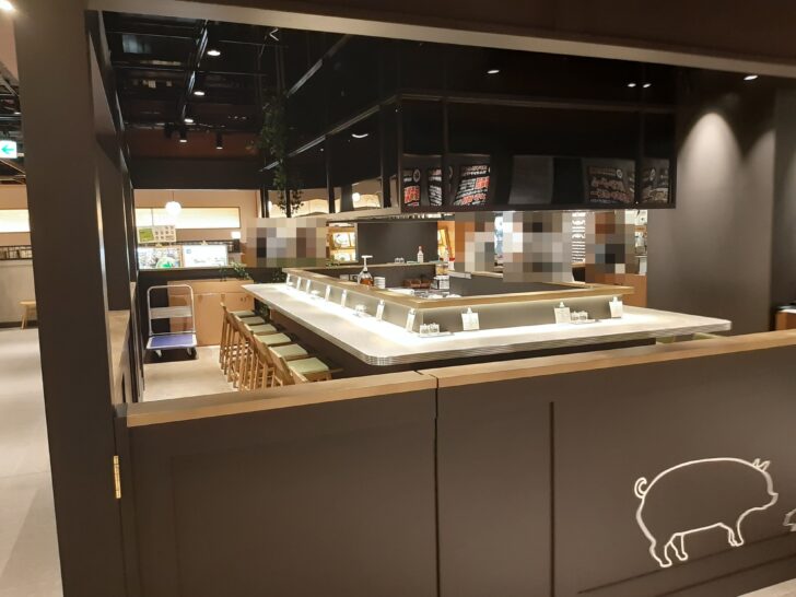 『マロリーポークステーキ ヨドバシ仙台店』の店舗は、既に完成していて、こんな感じになっていました。店内では、店員の方が打ち合わせを行っていました。お店は、カウンターが多い造りになっていて、テーブル席は少な目でした。