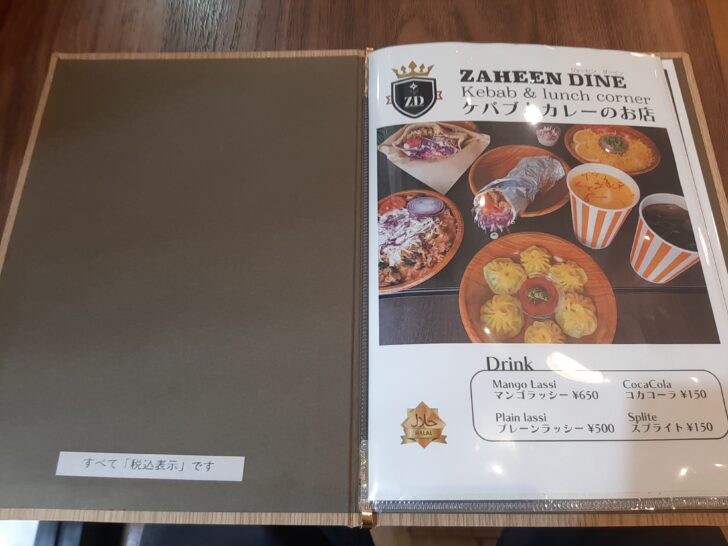 『ZAHEEN DINE』のメニューは次の通りです。