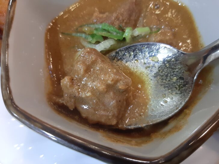 マトンカレー(羊肉 or やぎ肉)は、肉がゴロゴロと入っていて、酸味と辛味が感じられる好きなタイプのカレーでした。