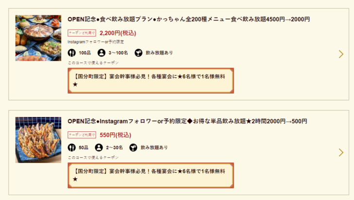 オープン記念で食べ飲み放題プラン【税抜4,500円】⇒【税抜2,000円】、単品飲み放題【税抜2,000円】⇒【税抜500円】となりますね。他にもハッピーアワー限定で飲み放題【税抜2,000円】⇒【税抜0円】というとってもお得なプランもありますね。