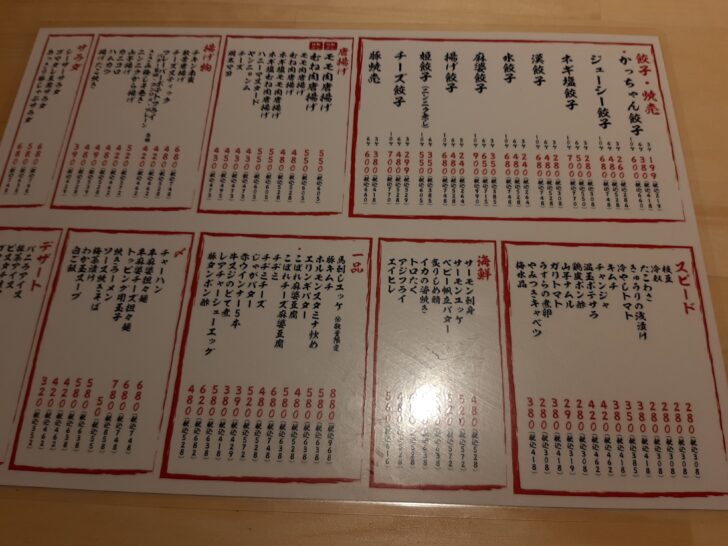 『餃子のかっちゃん 仙台一番町店 』のメニュー