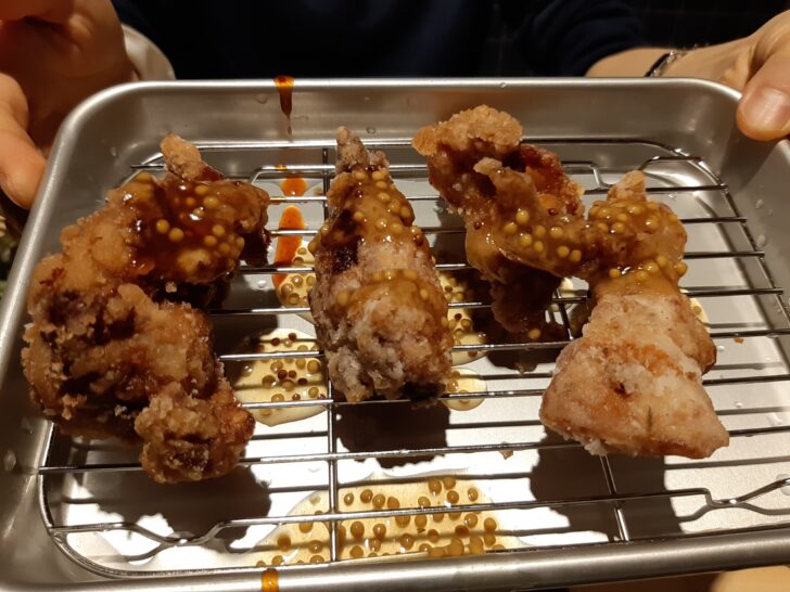 ハニーマスタード唐揚げを注文。甘めなタレが美味しいです。