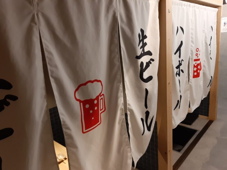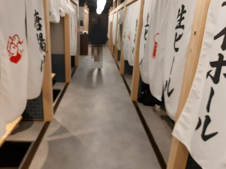 少人数用の各席は、大きな暖簾で仕切られており、半個室風の掘りごたつ席になっています。 お店の奥には大人数用の席もありましたが、そこは暖簾の仕切りはなく掘りごたつ席になっていましたね。