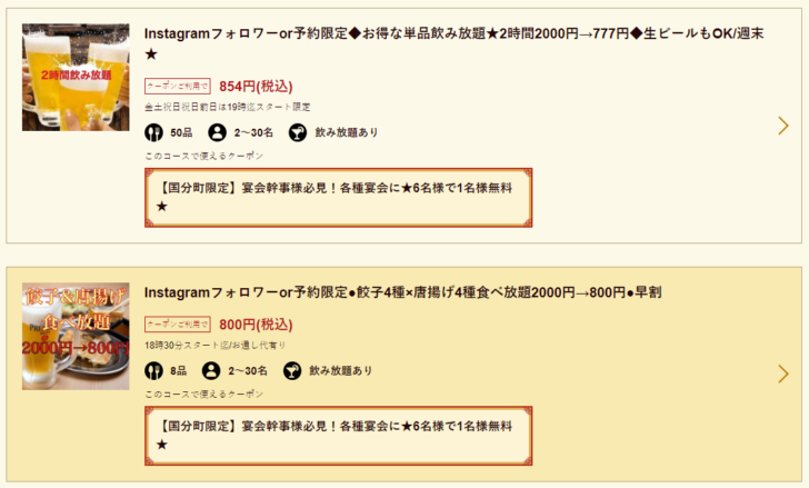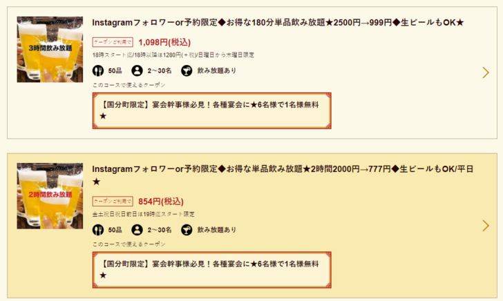 とってもお得なオープン記念プランは、既に終了していましたが、それでも食べ飲み放題プラン【税抜4,500円】⇒【税抜2,780円】、単品飲み放題プラン【税抜2,000円】⇒【税抜854円】、ハッピーアワー限定で飲み放題【税抜2,000円】⇒【税抜0円】と等、とってもお得なプランがありました。ただ、いつまでお得なコースプランがあるのか分からないので、早めに行ってみた方良いと思います。また、大人気のようなので、お店のHP、HOTPEPPERからの予約が必須ですね。