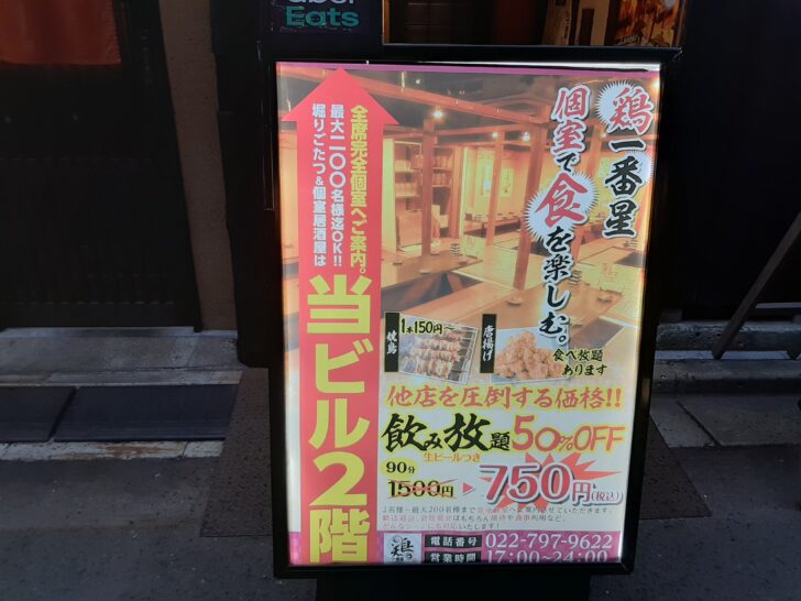 仙台市青葉区国分町にある個室居酒屋『鶏一番星 国分町店』で激安の食放・飲放コースを利用してみました。大満足できたので紹介します。
