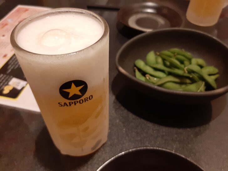 ドリンクは生ビールを注文。サッポロ黒ラベルでした。