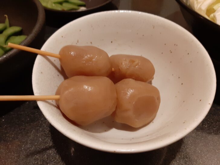 3品目は玉こんにゃく串です。2個/人と寂しいです。