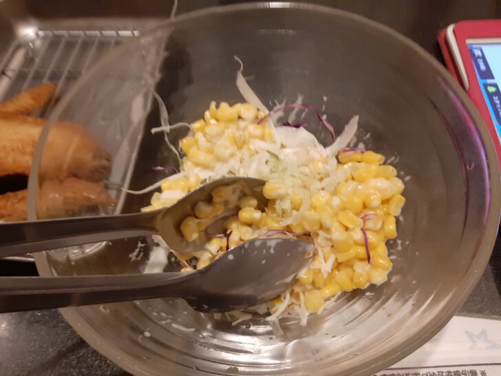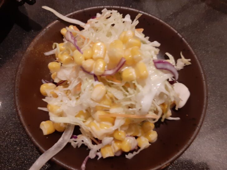 唐揚げ・手羽先揚げは何回も追加したので、ちょっとさっぱりとした物が欲しくなったので、コールスローサラダを追加注文しました。