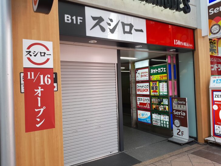 既にスシローの看板が設置されていました。11/16オープンの貼紙が貼られていました。